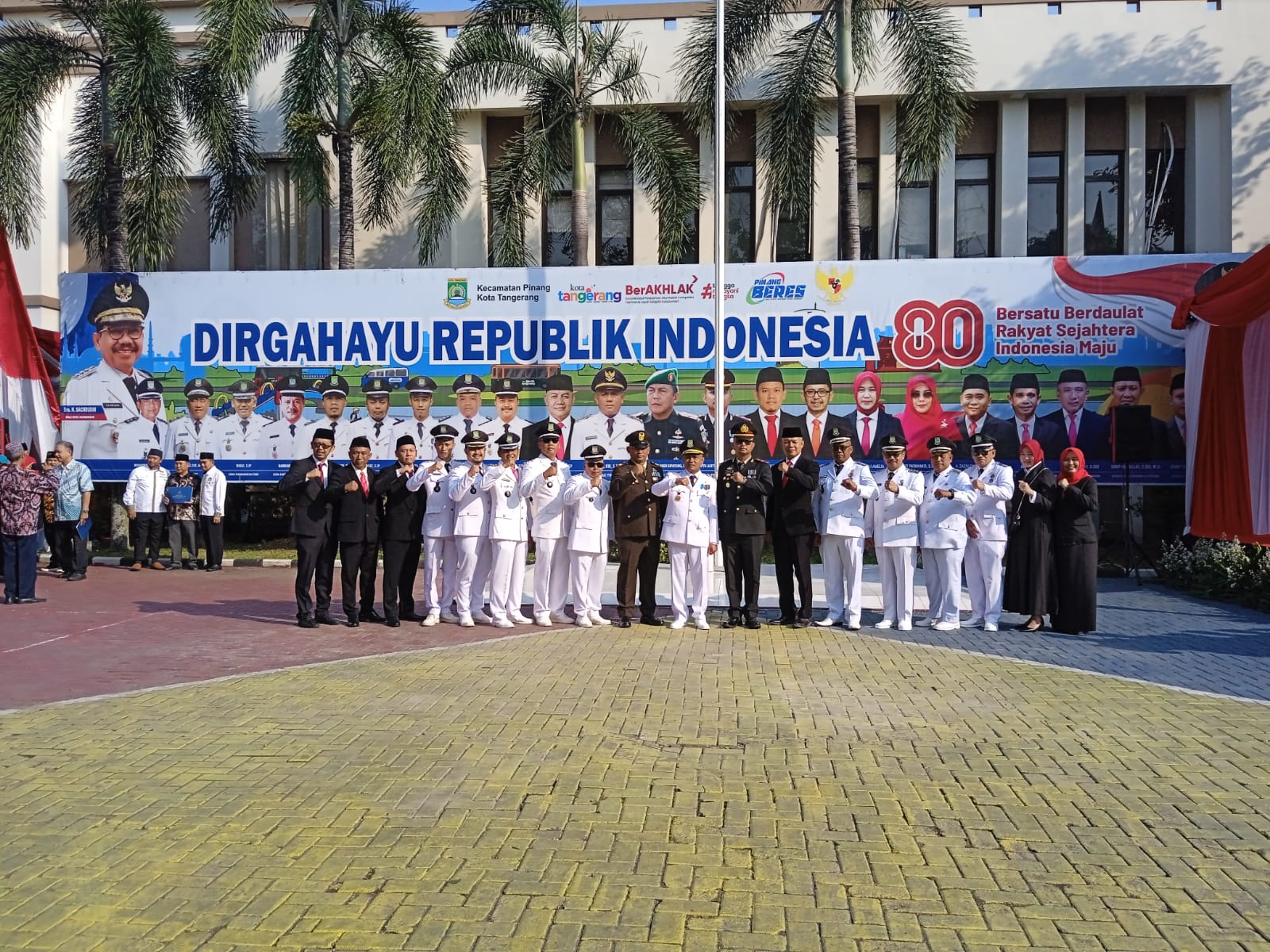 BantenOne.com | Kota Tangerang,- Kecamatan Pinang Kota Tangerang menggelar Upacara Pengibaran Bendera Merah Putih, memperingati HUT Kemerdekaan RI Ke 80, Minggu (17/8/25) di Halaman Lapangan Kecamatan Pinang. Upacara ini berlangsung dengan khidmat dan penuh semangat. Kegiatan ini dihadiri oleh. Kapolsek Pinang, Danramil 01 Tangerang, Lurah se-Kecamatan Pinang, Jajaran Forkopimcam lainnya, Selain itu, peserta upacara juga terdiri dari unsur Koramil, Polsek, perangkat Kecamatan, UPTD, perwakilan pelajar dari tingkat SD, SMP, SMA, RT/RW serta organisasi masyarakat dan berbagai elemen masyarakat, menandakan kuatnya persatuan dan kesatuan di wilayah tersebut, Kota Tangerang-Banten.