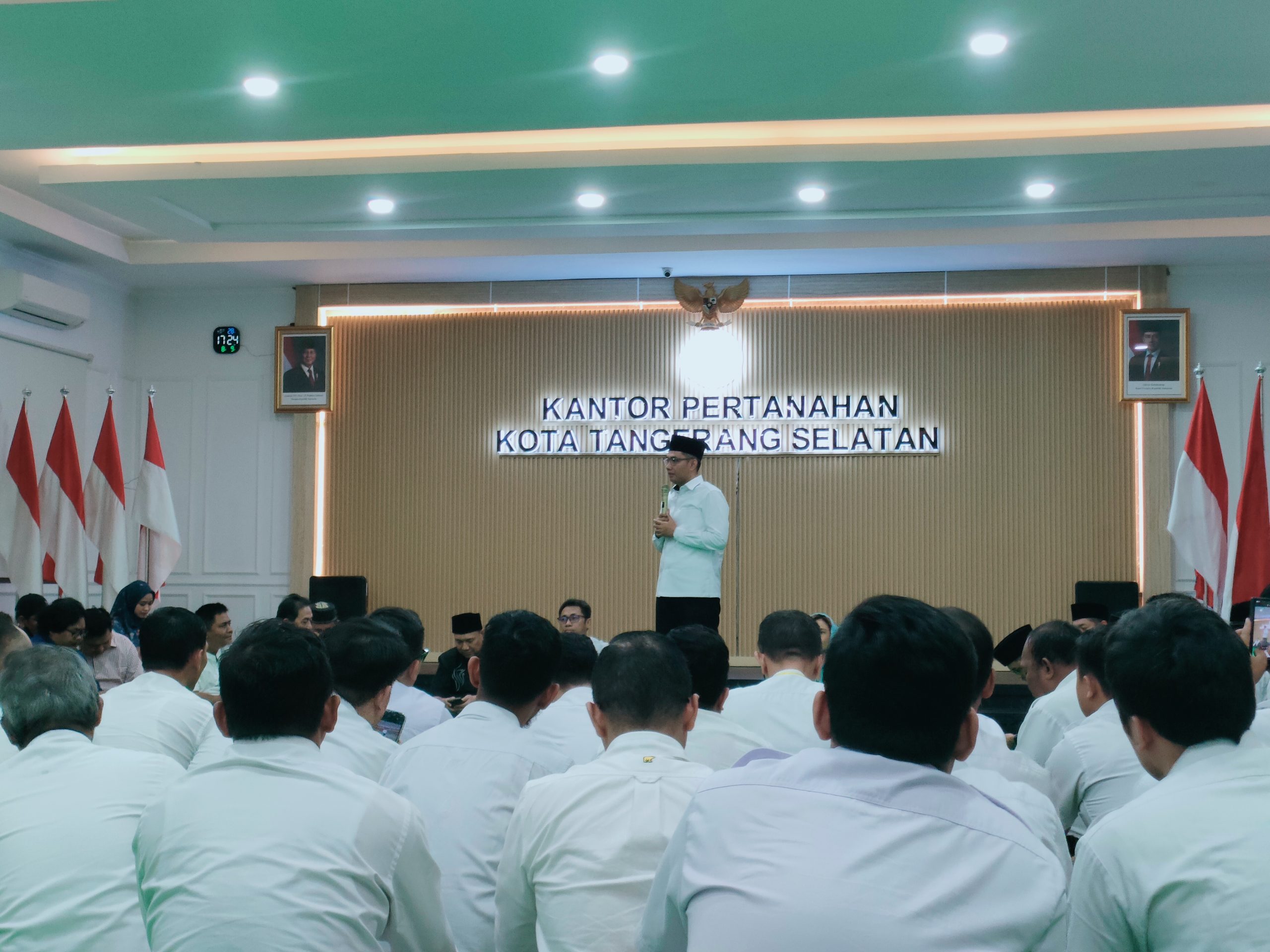 Acara yang berlangsung di Gedung Kantor Pertanahan Kota Tangsel begitu hangat dan penuh keakraban tersebut dihadiri seluruh jajaran pegawai Kantor Pertanahan Kota Tangsel, serta wartawan dari sejumlah organisasi pers, salah satunya Persatuan Wartawan Indonesia (PWI) Kota Tangerang Selatan.