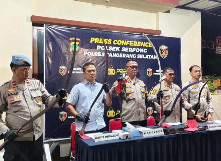 Kapolsek Serpong Kompol Suhardono, S.H., M.H., didampingi Wakapolsek, Kanit Reskrim, dan Kasi Humas Polres Tangsel, mengungkapkan bahwa pengungkapan ini berawal dari laporan warga kepada Bhabinkamtibmas Kelurahan Cilenggang tentang adanya gerombolan remaja yang berkumpul di sekitar Kramat Tajuk, RT 006 RW 002.