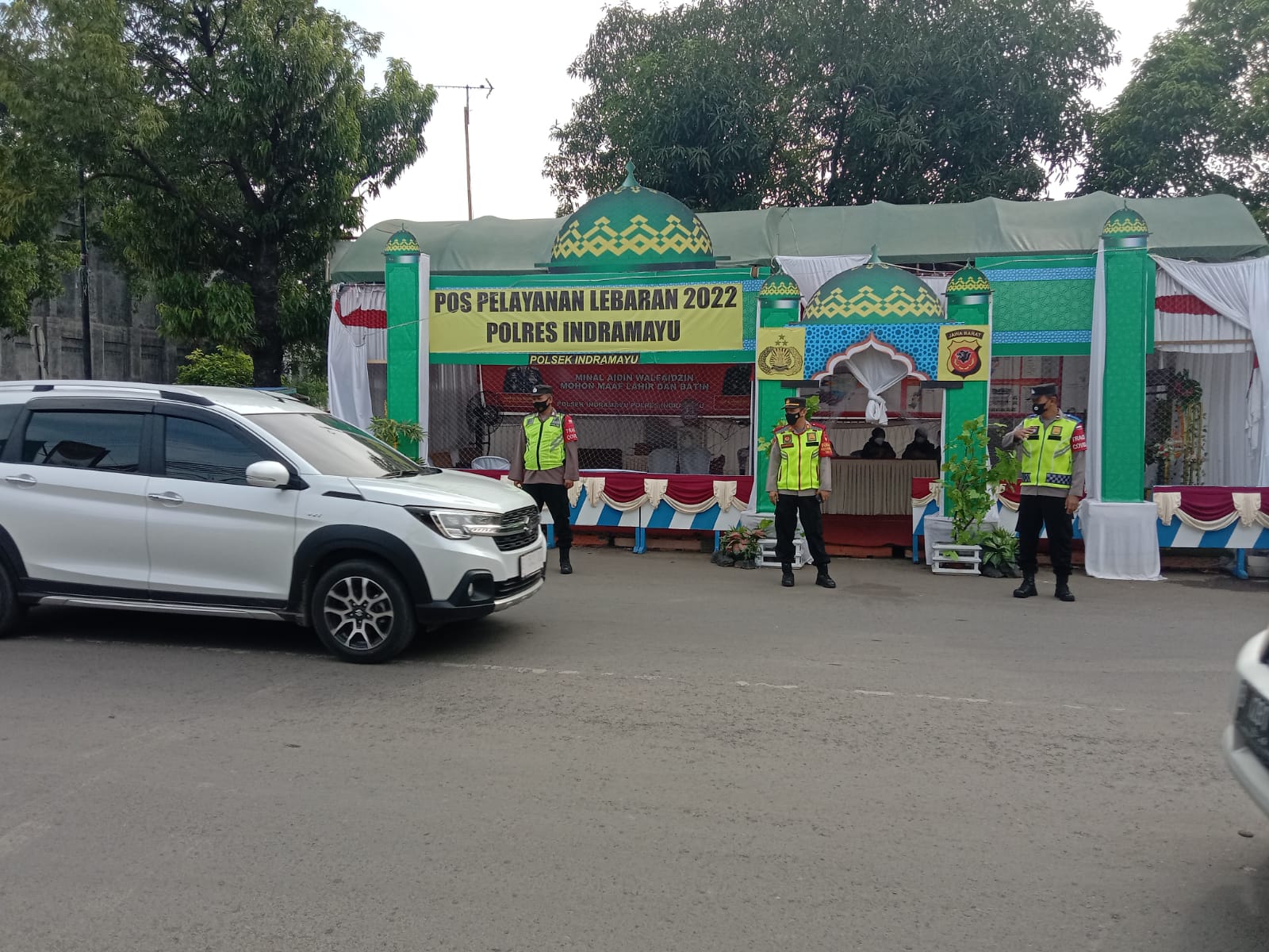 Selesai melaksanakan Apel kesiapan, piket jaga Pos Yan melanjutkan dengan melakukan pengaturan Lalu Lintas di jalan raya perempatan Yogya Toserba Indramayu.
