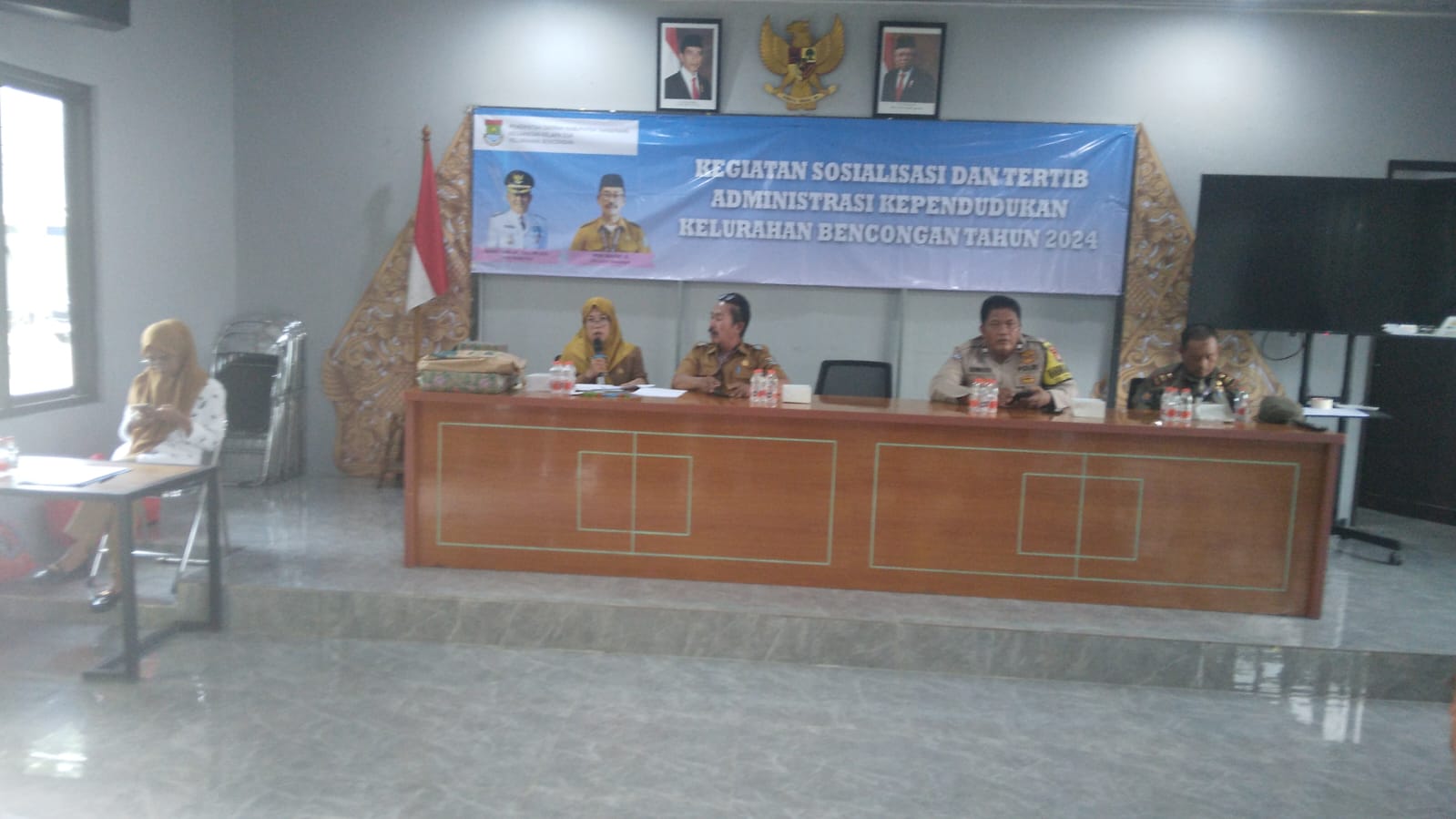 BantenOne.com, Tangerang Selatan – Bhabinkamtibmas Kelurahan Bencongan, Aiptu Sudiro, turut serta dalam acara sosialisasi dan tertib administrasi kependudukan yang diselenggarakan di wilayahnya. Acara ini dihadiri oleh sejumlah tokoh masyarakat dan unsur terkait, termasuk Plt Lurah Bencongan, Kasi Pol PP, Kasi Pemerintahan, Ketua Forum RW, serta para ketua RW se-Kelurahan Bencongan.