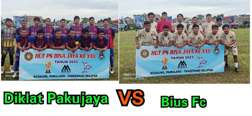 BantenOne.Com ,Tangsel-Bius fc harus tumbang di putaran pertama kompetisi HUT Bina jaya cup ke XXV tahun 2023 setelah takluk dari Diklat Pakujaya FC dengan score 2-1 yang bertanding di lapangan latus jaya Kedaung kecamatan Pamulang kota Tangerang Selatan pada hari Rabu 25/01/2023