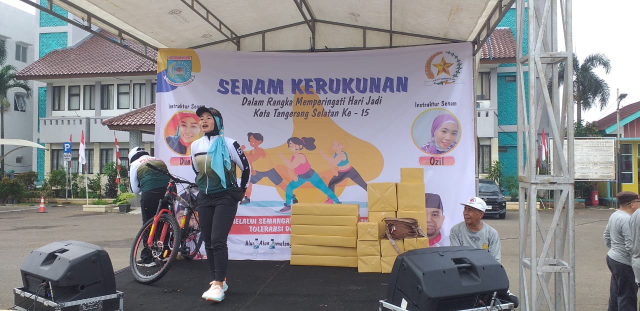 BantenOne.com – Tangerang Selatan – Dalam rangka memperingati HUT Tangsel Ke-15 Forum Kerukunan Umat Beragama (FKUB) Tangsel, berkolaborasi dengan Cabang Olahraga Persatuan Senam (Persani) mengadakan kegiatan Senam Kerukunan.Selain olahraga,acara tersebut juga memberikan Snack dan door prize dengan hadiah utama satu buah sepeda dan banyak lagi door prize lainnya.