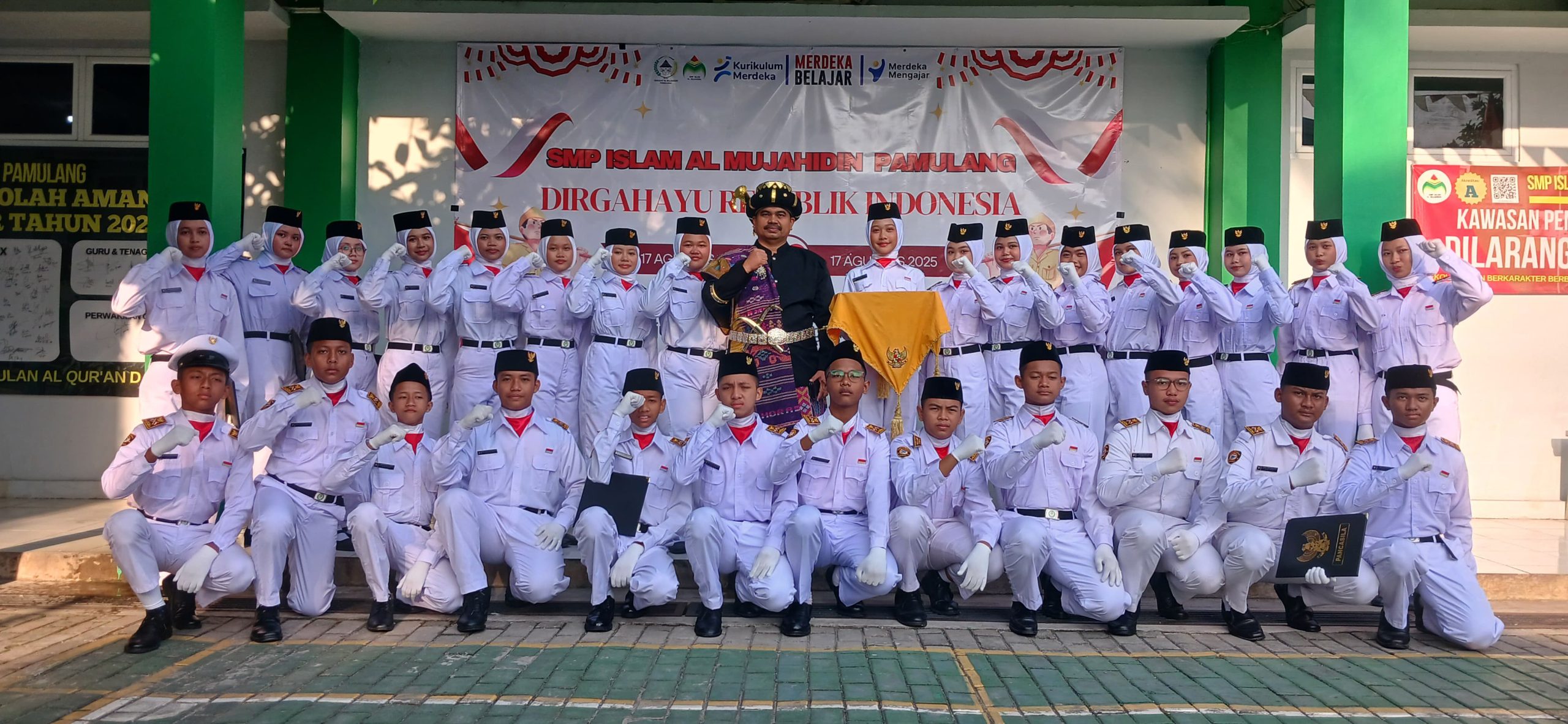 BantenOne.com |Tangerang Selatan – SMP Islam Al Mujahidin, Pamulang Barat, Kota Tangerang Selatan (Tangsel) gelar upacara peringatan HUT ke-80 Republik Indonesia, dengan meriah, namun tak meninggalkan khidmat, pada Sabtu (17/8).