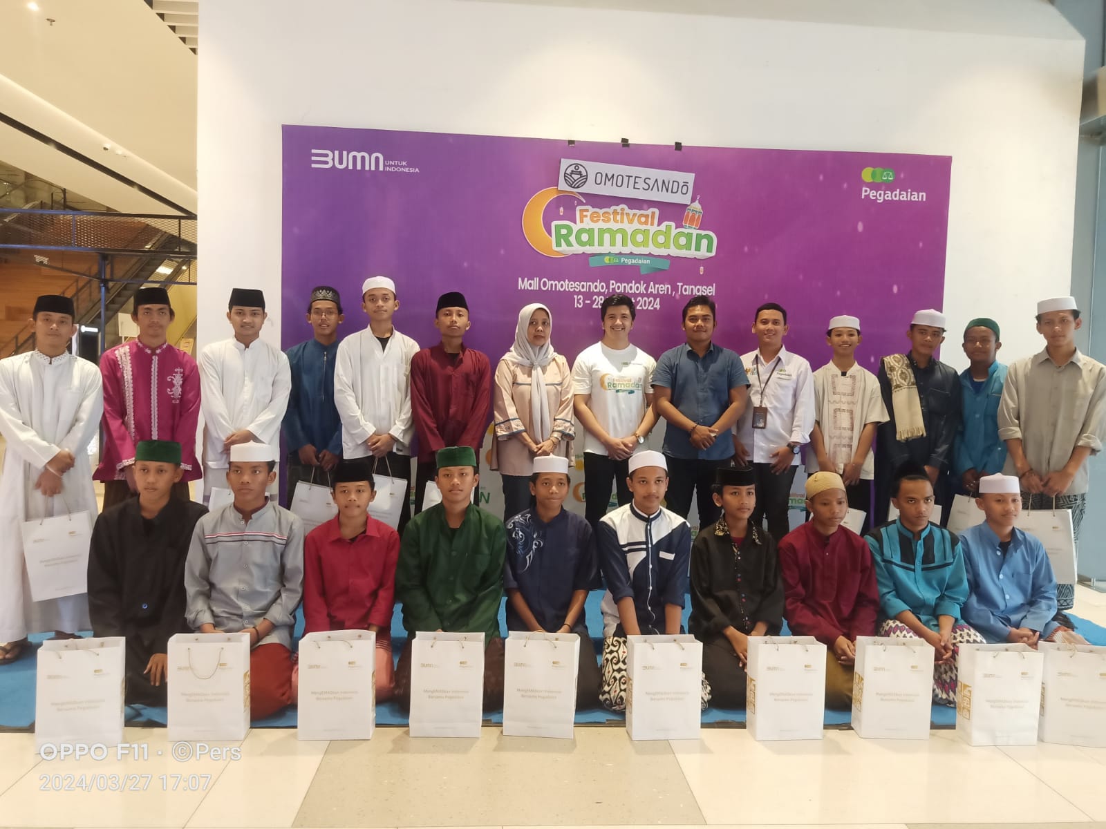 BantenOne.com, Tangsel--(28/3) Bulan Romadon 1445 H menjadi momen yang tidak luput oleh Pegadaian Area Cirendeu untuk berbagi kepada anak anak yatim. Kegiatan ini merupakan rangkaian acara dalam even festival Romadon Pegadaian yang digelar di Mall Omotesando Pondok Aren. Kali ini Pegadaian area Cirendeu menyalurkan santunan kepada 20 anak yatim yang diasuh oleh yayasan pondok pesantren yatim Al Hanif Ciputat. Acara ini disemarakkan juga dengan lomba pildacil tingkat sekolah dasar dan Penyampaian dongeng islami.