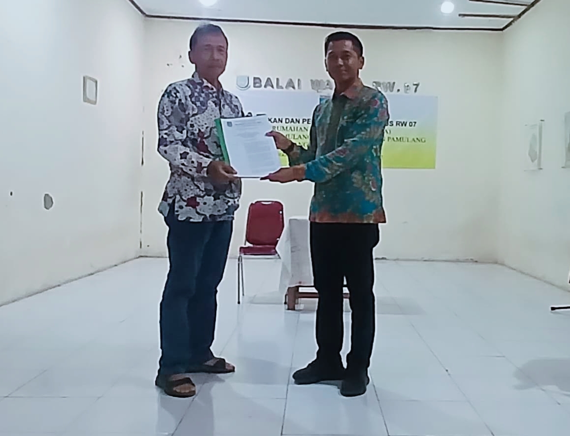 BantenOne.com |Tangerang Selatan — Proses serah terima jabatan sekaligus pelantikan Ketua RW 007 wilayah Pamulang Indah (MA), Kelurahan Pamulang Timur, Kecamatan Pamulang, Kota Tangerang Selatan yang berlangsung di balai warga 007 berjalan lancar dan penuh kehangatan, Minggu (8/11). Dalam acara tersebut, Drs. Moch. Muminto Arif. M.I.Kom., resmi dilantik sebagai Ketua RW 007 untuk masa bakti 2025–2028.