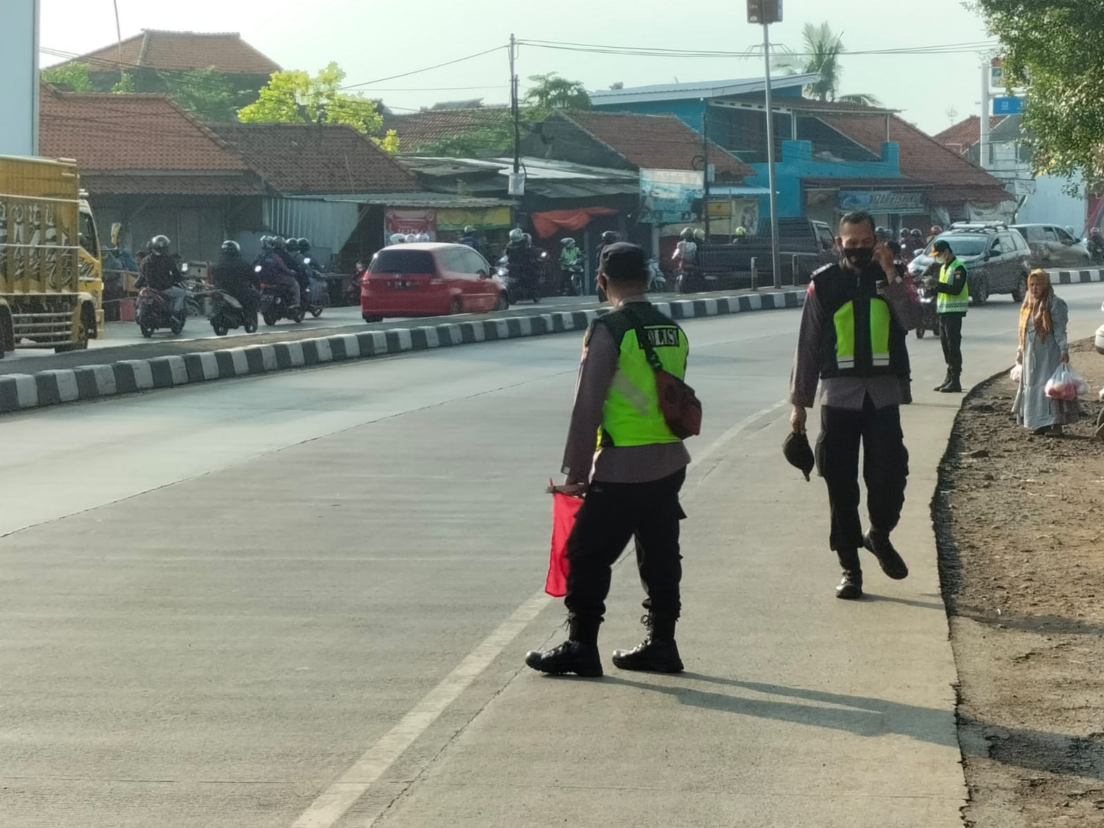 ,Polres Indramayu – Guna mewujudkan keamanan serta kelancaran Lalu Lintas para pengguna jalan khususnya pemudik menjelang Hari Raya Idul Fitri 1443 H, Polsek Kandanghaur jajaran Polres Indramayu Polda Jabar melakukan pengaturan Lalu Lintas pagi, di depan Pos Pengamanan (Pos PAM) Pasar Tradisional di wilayah Kecamatan Kandanghaur, Kabupaten Indramayu, Sabtu (30/04/2022).