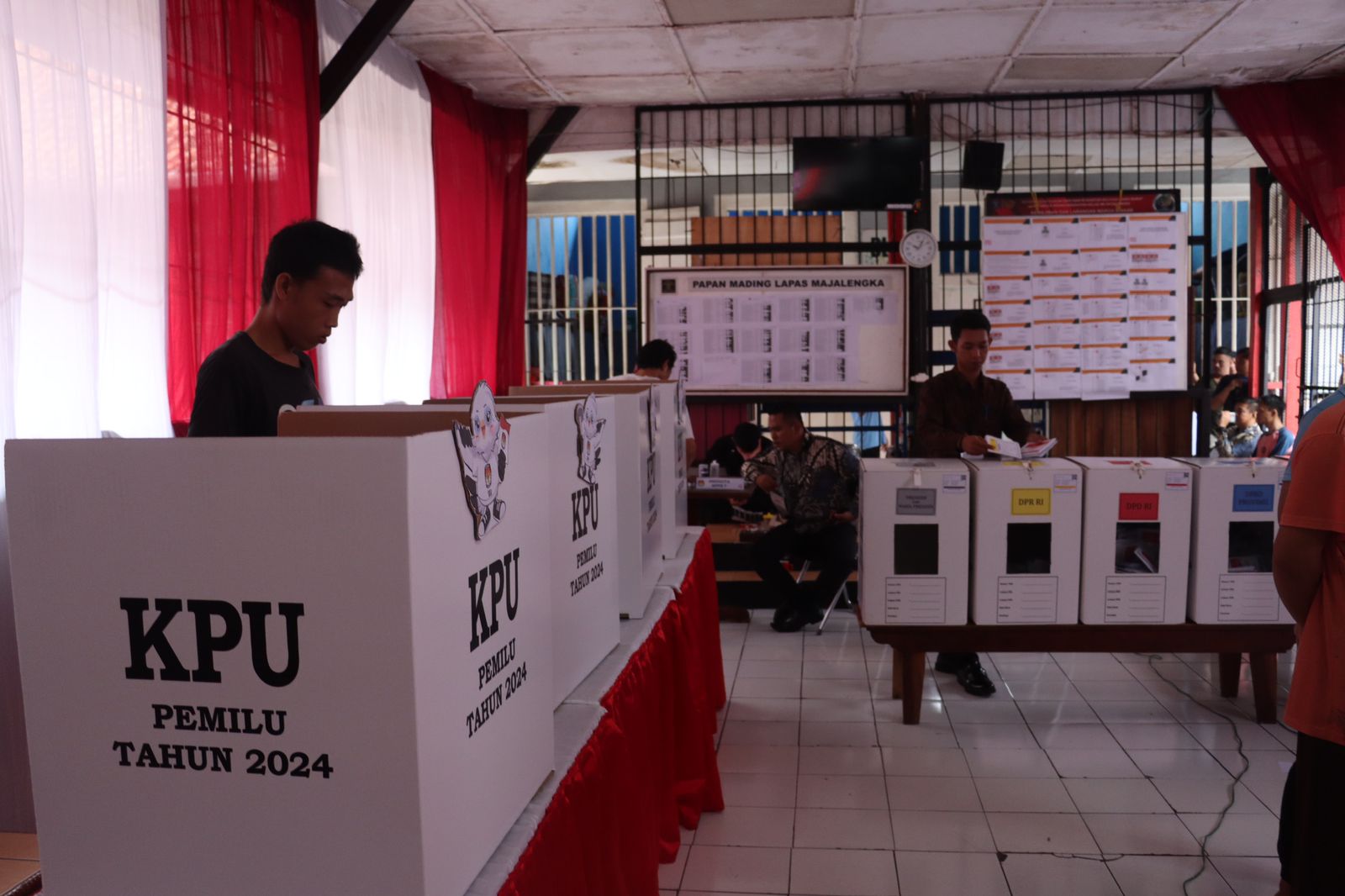 BantenOne.com – Polres Majalengka – Kapolres Majalengka Polda Jabar, AKBP Indra Novianto, memantau langsung proses pencoblosan surat suara di Lembaga Pemasyarakatan (Lapas) Kelas IIB Majalengka pada Pemilihan Umum (Pemilu) Tahun 2024, yang berlangsung pada Rabu (14/2/2024).