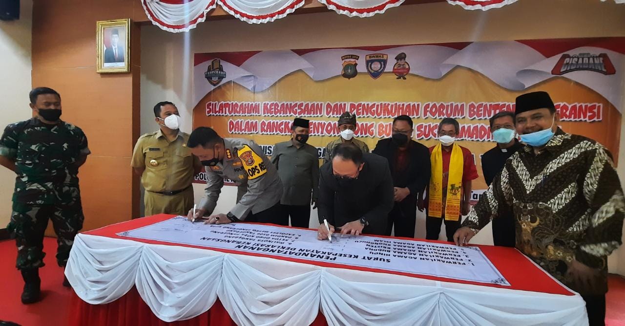 BantenOne.com , Tangerang- Songsong Bulan Suci Ramadhan 1443 Hijriah, Polres Metro Tangerang Kota menggelar acara silaturahmi Kebangsaan sekaligus Pengukuhan Forum Benteng Toleransi, bertempat di Aula Mapolres, Selasa (22/3/2022).
