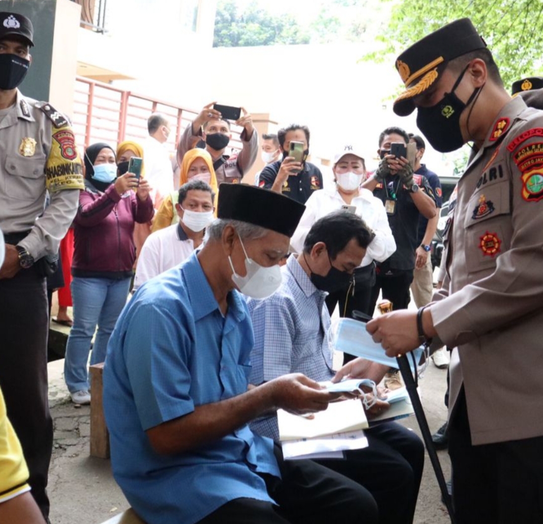 AKP Antonius, S.H.,M.H pun menambahkan, Bahwa dalam giat ini Kapolres Tangerang Selatan AKBP Sarly Sollu, S.I.K.,M.H beserta PJU Polres Tangerang Selatan lakukan peninjauan vaksinasi dan membagikan sembako beserta masker kepada Masyarakat yang sudah tervaksin.