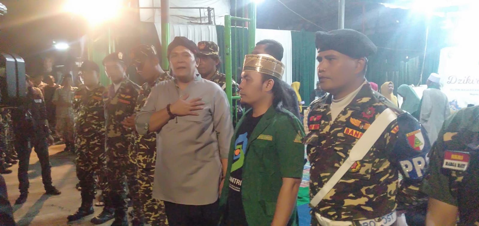 Pada kesempatan itu, selain memberikan rasa bangganya kepada Ustadz Siswono alias Abah Gondrong dan Ustadz Supri, Abah Junaedi juga memberikan apresiasinya terhadap andil Banser pada kegiatan tabligh akbar malam ini.