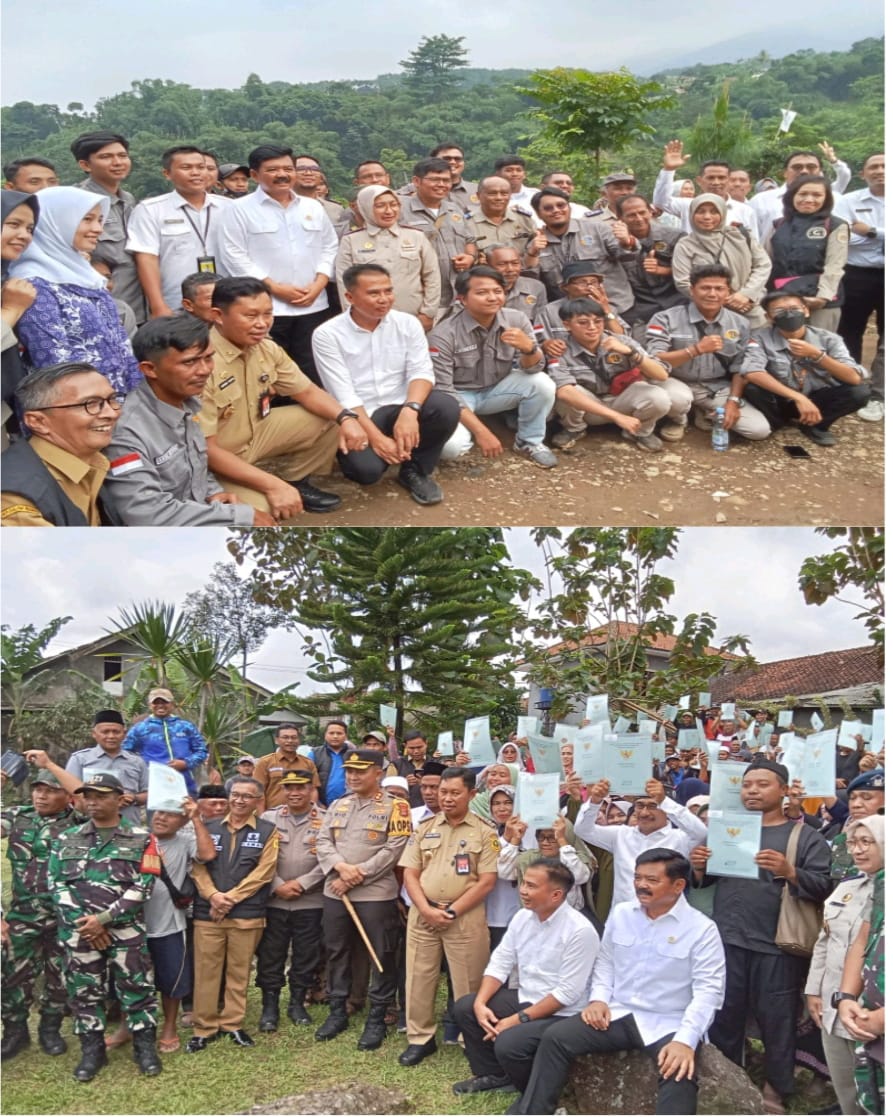 BantenOne.com, B0g0r, Baru ini Mentri Atr dan Kepala Bpn Gubernur Jawa Barat serta Pj Bupati melakukan kunjungan kerja ke Desa Gunung Sari dan Desa Gunung Bunder Dua dalam rangka penyerahan sertifikat PTSL kepada masyarakat desa Gunung sari dan Gunung Bunder Dua Kabupaten Bogor pada hari Senin tanggal ( 12 – Febuari – 2024 ) Bertempat di Lembah Batu desa Gunung Bunder dua dan desa Gunung sari , penyerahan sertifikat diserahkan simbolis kepada Kades Ciasian ibu Lili dan kades Ciara Junaedi penyerahan sertifikat langsung di berikan Mentri Atr yang Didampinggi Langsung kepala Bpn Gubernur Jawa barat PJ Bupati bogor dan Lanut Ats ,Camat pamijahan Ketua panitia PTSL Sugeng kades Gunung Bunder Pejabat BPN , Tpk desa Gunung Bunder Rahmat Budiman, Muspida , Muspica, Kapolres, Dandim, Kapolsek , Danrami, Babinsa, Babinkatibmas, karang Taruna, Linmas, serta unsur masyarakat.