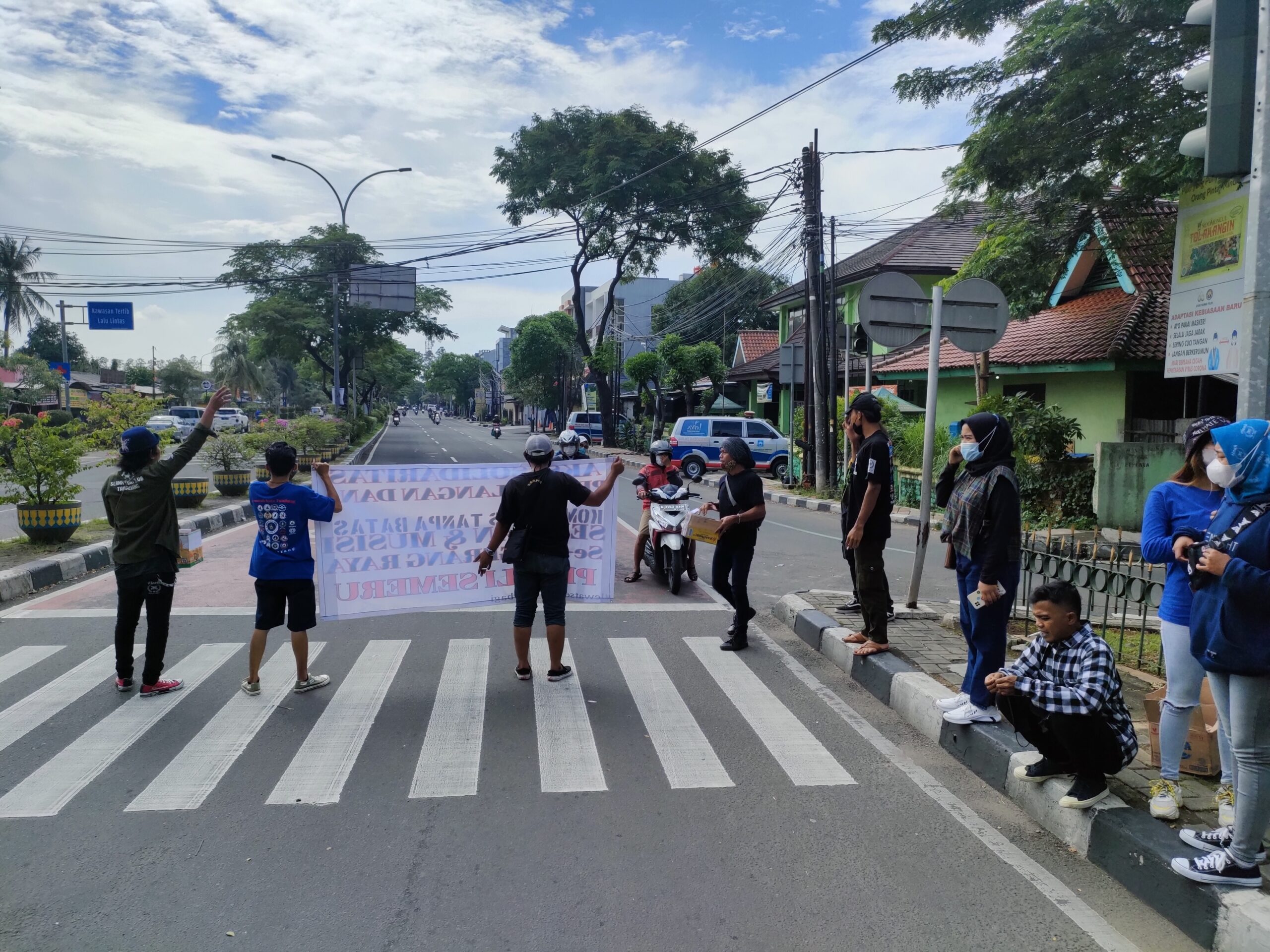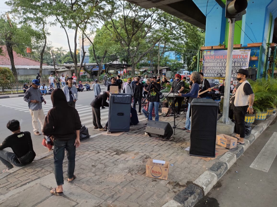 “Kami hadir tanpa modal apa pun yang kami perbuat semata untuk kepentingan peduli sosial kami dari para komunitas seni dengan modal tekad para anggota komunitas yang ada di tangerang raya ini maka kami turun ke jalan.