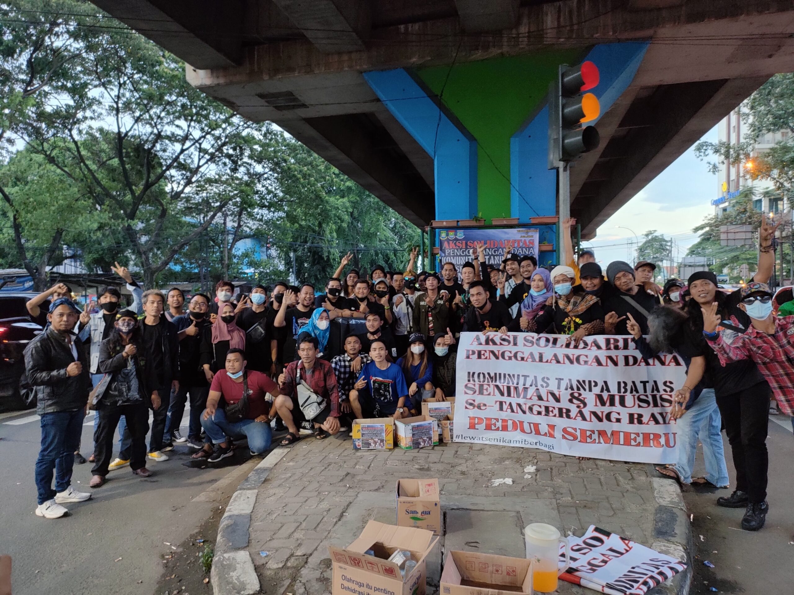 “Di sini kami sengaja ber inovasi dengan cara kami yaitu menggalang dengan ngecrek di bawah PlayOver bersama kawan-kawan Musisi se-Kota Tangerang. Karena hanya dengan cara inilah kemampuan kami.