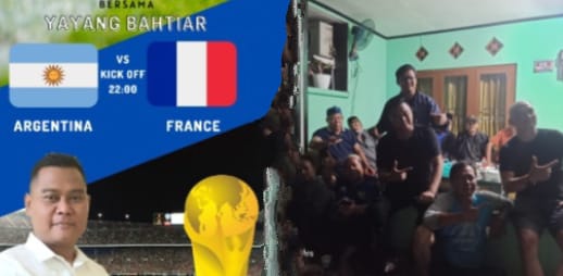 BantenOne.com ,Tangsel-Nonton bareng (Nobar) final piala Dunia tahun 2022 Qatar bersama Yayang Bahtiar, Nobar yang berlangsung di Rumah jalan Aria putra RW 14 Kelurahan kedaung Kecamatan Pamulang Kota Tangsel minggu 18/12/2022.