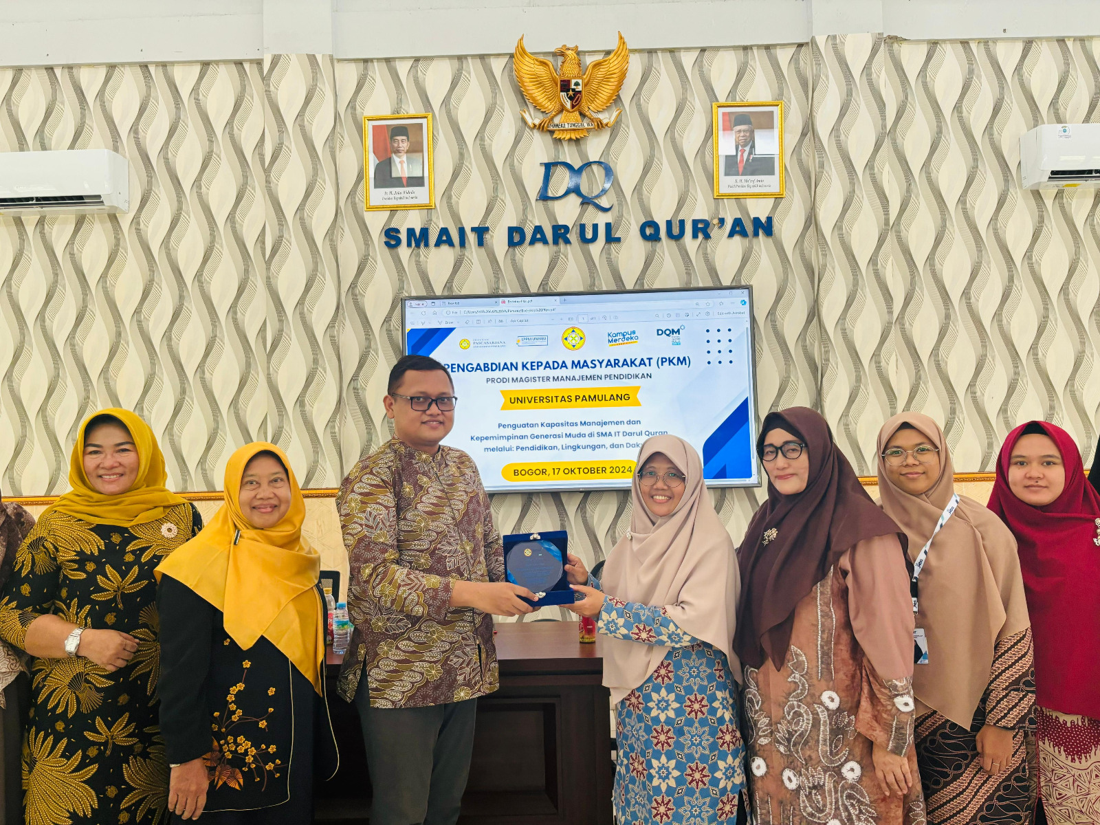 Kegiatan ini berlangsung di SMA IT DARUL QUR’AN yang terletak di Kabupaten Bogor, Jawa Barat. Dan dihadiri oleh pembicara dari mahasiswi Pascasarjana Manejemen Pendidikan Universitas Pamulang (UNPAM) serta dosen pembimbing PKM dan Kaprodi Manajemen Pendidikan Dr.Saiful Anwar, S.Pd, S.E, M.Pd. Kordinator PKM Dr. Sri Utaminingsih S.H, S.Pd, M.M.Pd, M.H. Kepala Sekolah, Para Dewan Guru SMA IT DARUL QUR’AN.