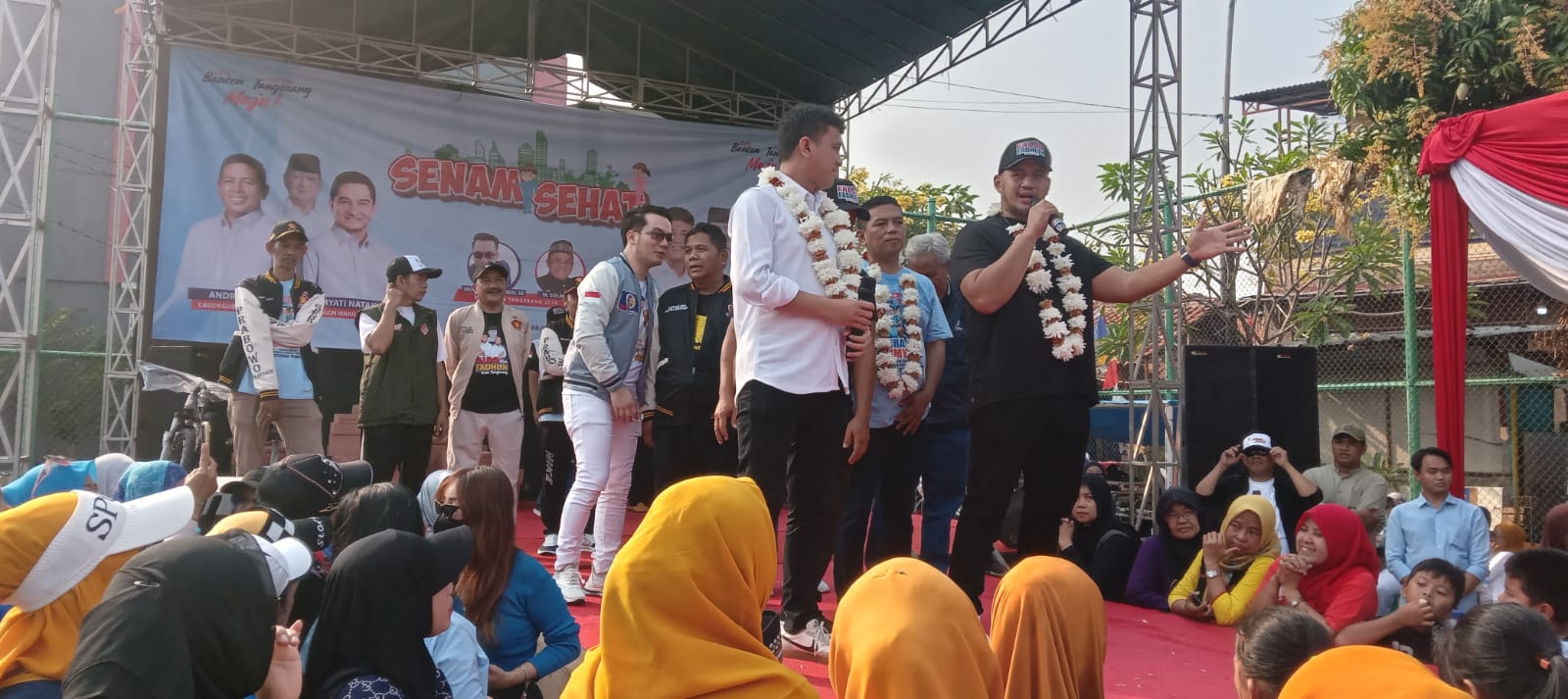 Dalam kesempatan ini anggota dewan kota tangerang terpilih 2024 — 2029 Mochamad Pandu. SE. mengajak seluruh peserta senam sehat yang hadir untuk mendukung dan memilih anak muda Faldo dan Fadhlin menjadi walikota dan wakil walikota tangerang serta untuk mendukung dan memilih Andra Soni sebagai gubernur provinsi banten.