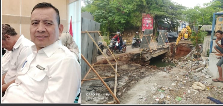 BantenOne.com ,Tangsel–Pembongkaran badan jembatan yang menghubungkan jalan KH Dewantoro Kelurahan Sawah kecamatan Ciputat sudah di mulai sejak hari selasa 25/07