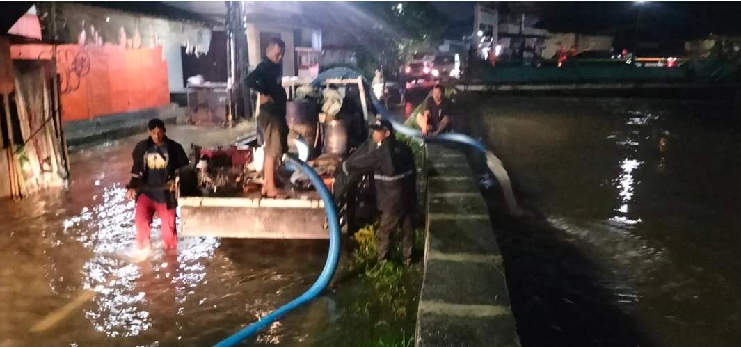 Mesin pompa juga dikerahkan untuk mempercepat penanganan banjir. Sampai berita ini diturunkan, genangan tersisa di Kampung Bulak dan Pondok Maharta Kecamatan Pondok Aren.