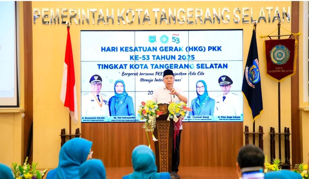 BantenOne.com – CIPUTAT– Pemberdayaan Kesejahteraan Keluarga (PKK) Kota Tangerang Selatan (Tangsel) memperingati Hari Kesatuan Gerak (HKG) PKK ke-53 tahun 2025 di Aula Blandongan, Pusat Pemerintahan Kota Tangsel, Jumat (20/06/2025).