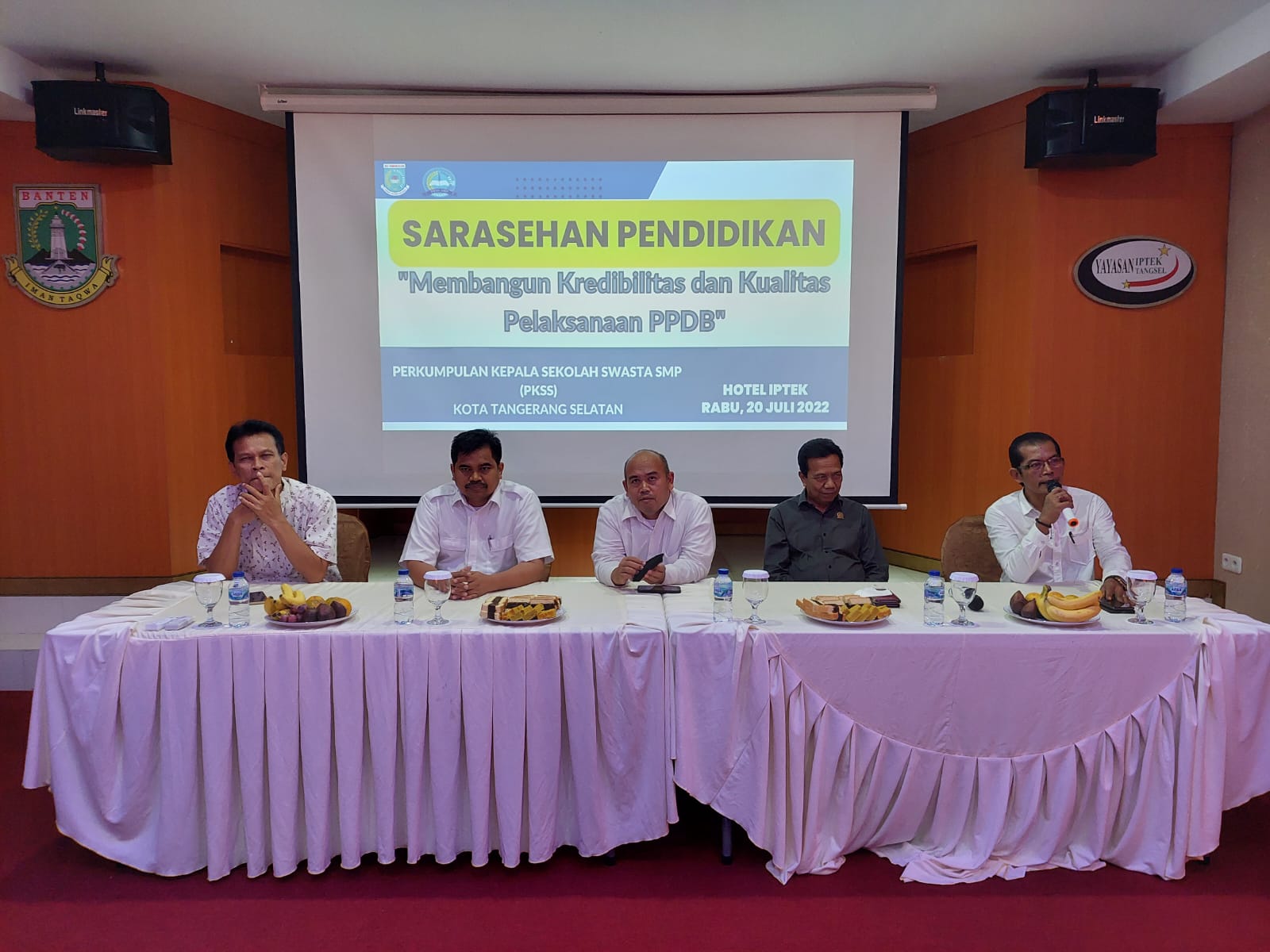 BantenOne.com ,Tangsel-Perkumpulan Kepala Sekolah Swasta (PKSS) Kota Tangerang Selatan memprakarsai digelarnya sarasehan pendidikan dengan tema “Membangun Kredibilitas dan Kualitas Pelaksanaan PPDB”, di Hotel Iptek, Setu Tangerang Selatan, Rabu (20/07/2022) kemarin.