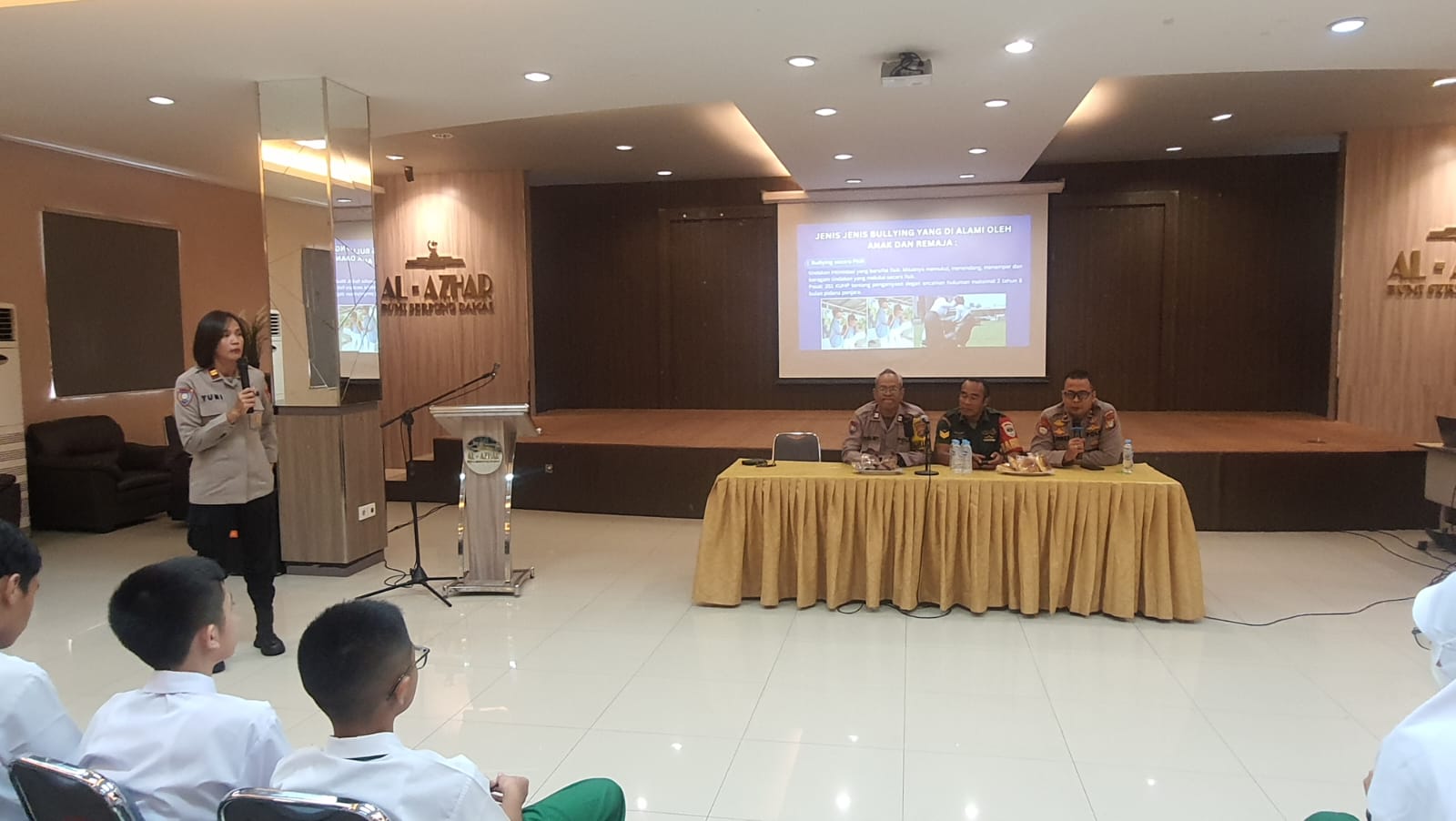 BANTENONE.COM | Tangsel. – Satuan Binmas Polres Tangerang Selatan melaksanakan kegiatan pencegahan tawuran antar pelajar yang dikenal dengan nama CETAR (Cegah Tawuran Antar Pelajar). Kegiatan ini melibatkan lima pilar penting, yaitu Unsur TNI, POLRI, Pemerintah, Akademisi, dan Tokoh Masyarakat. Acara ini berlangsung di SMP Islam Al-Azhar Serpong dan dipimpin langsung oleh Iptu Wahyuni, SH. Rabu, 5/2/2025.