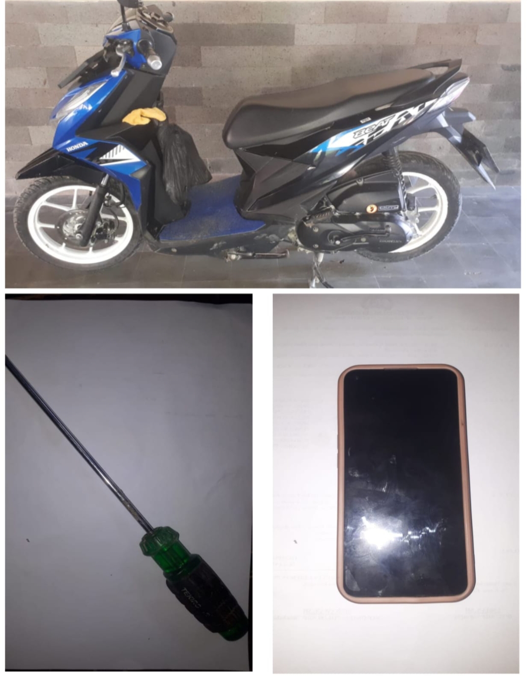 “Kami juga mengamankan sejumlah barang bukti dalam kasus ini diantaranya handphone hasil curian, obeng dan sepeda motor yang digunakan pelaku saat beraksi, serta lainnya,” ujar Kompol Rynaldi, N. Pewarta : (Markus.T).