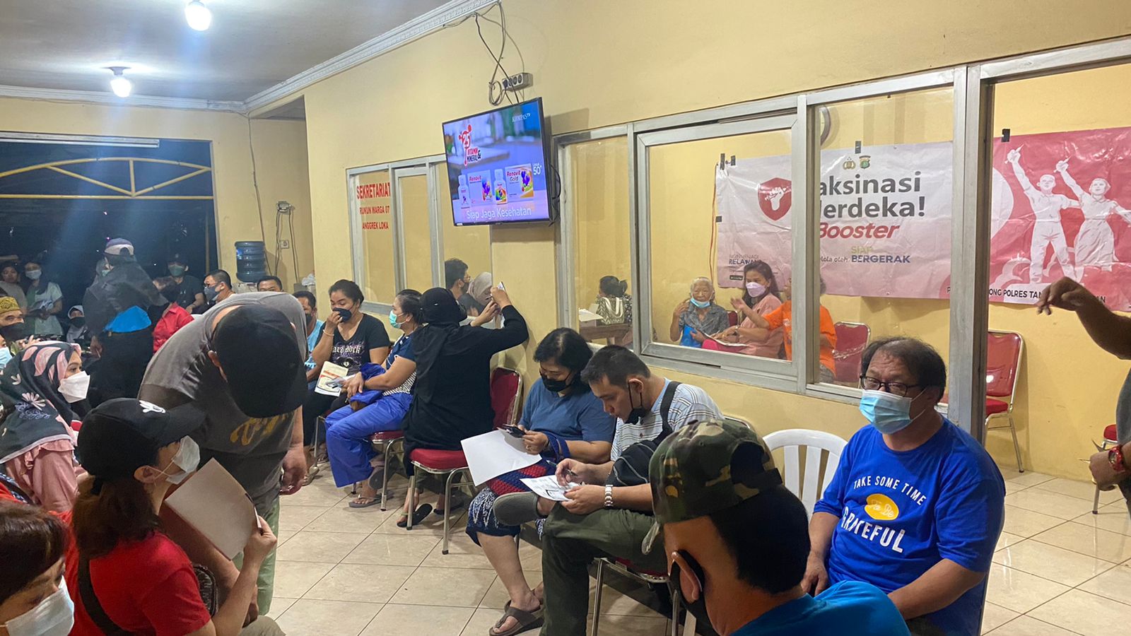 BantenOne.Com , Tangerang Selatan-Dalam Rangka Perkuat Akselerasi Vaksinasi Nasional serta untuk memutus mata rantai penyebaran covid-19, Polsek Serpong Polres Tangerang Selatan menggelar Kegiatan Vaksinasi malam hari, di hari ke empat pada bulan Suci Ramadhan.