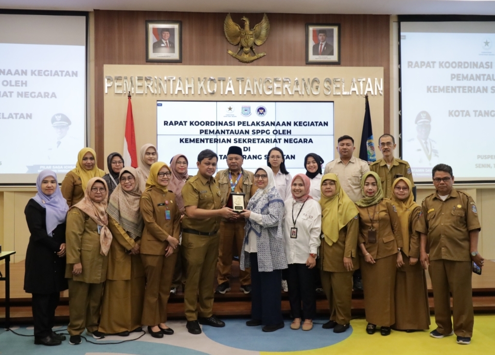 BantenOne.com |CIPUTAT, Tangerang Selatan – Pemerintah Kota Tangerang Selatan (Pemkot Tangsel) menunjukkan komitmennya dalam mendukung pelaksanaan Program Makan Bergizi Gratis (MBG) yang merupakan program prioritas nasional. Hal ini ditegaskan oleh Sekretaris Daerah Kota Tangsel, Bambang Noertjahjo, dalam Rapat Koordinasi (Rakor) yang digelar oleh Kementerian Sekretariat Negara (Kemensetneg) pada Senin (13/10/2025) di Aula Blandongan, Puspemkot Tangsel.