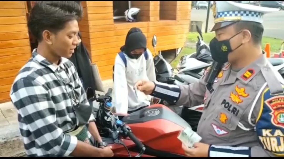 “Pengendara tersebut tidak kita tilang melainkan hanya di berikan himbauan agar tertib berlalu lintas guna keselamatan dan periksa surat surat kendaraannya ketika akan bepergian dengan ketika akan menggunakan sepeda motor,”ujar kanit turajawali Iptu Rohmatullah.