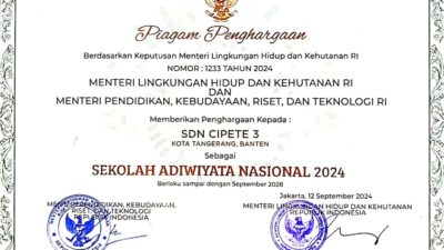 SDN Cipete 3 Kota Tangerang Raih Prestasi Sekolah Adiwiyata Tingkat Nasional