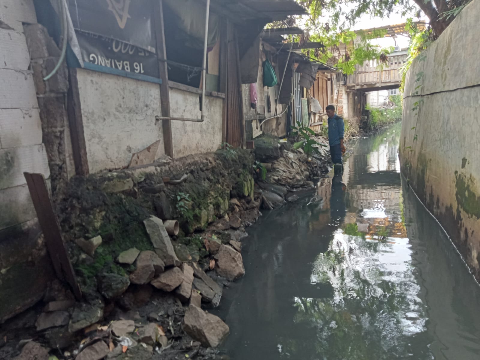 Kondisi turap kali cisarung yang sudah tiga tahun belum diperbaiki.