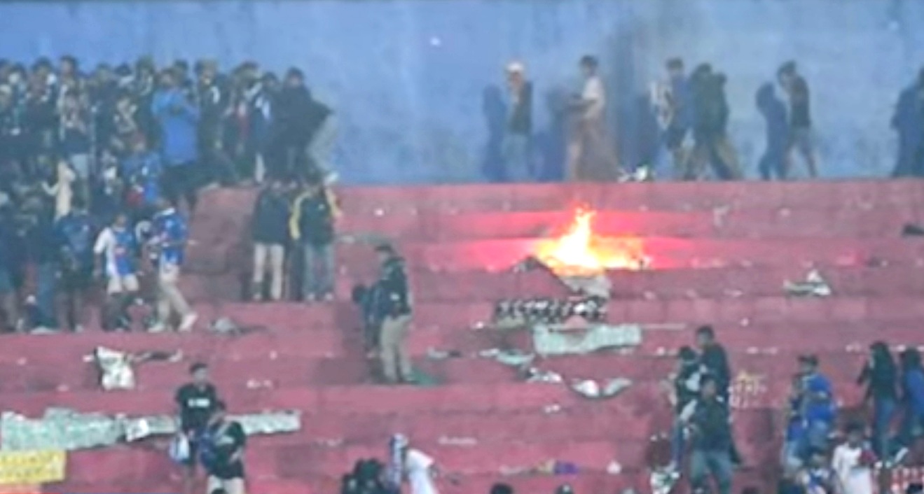 Insiden terjadinya tragedi berdarah usai kekalahan skor 2-3 Arema FC versus Persebaya. Suporter Arema memasuki lapangan karena timnya kalah.