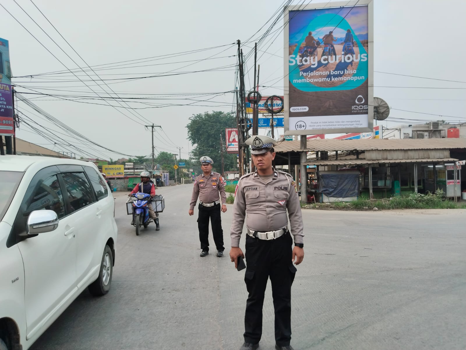 Unit Lantas Polsek Legok Laksanakan Pengaturan Lalu Lintas di Perempatan Jaha Legok